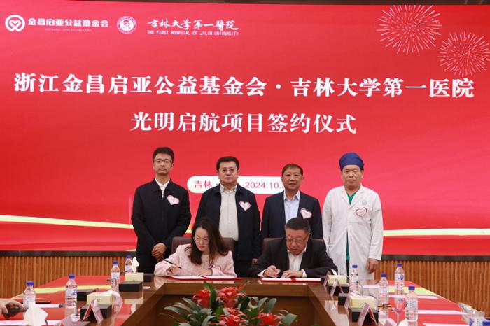 2024年10月31日,金昌启亚公益基金会与吉林大学第一医院举行了隆重的签约仪式,在吉林省慈善总会秘书长、项目部主任、辽源市东辽县党委书记、安恕镇党委书记等领导的见证下,“光明启航”眼疾项目正式启动。
