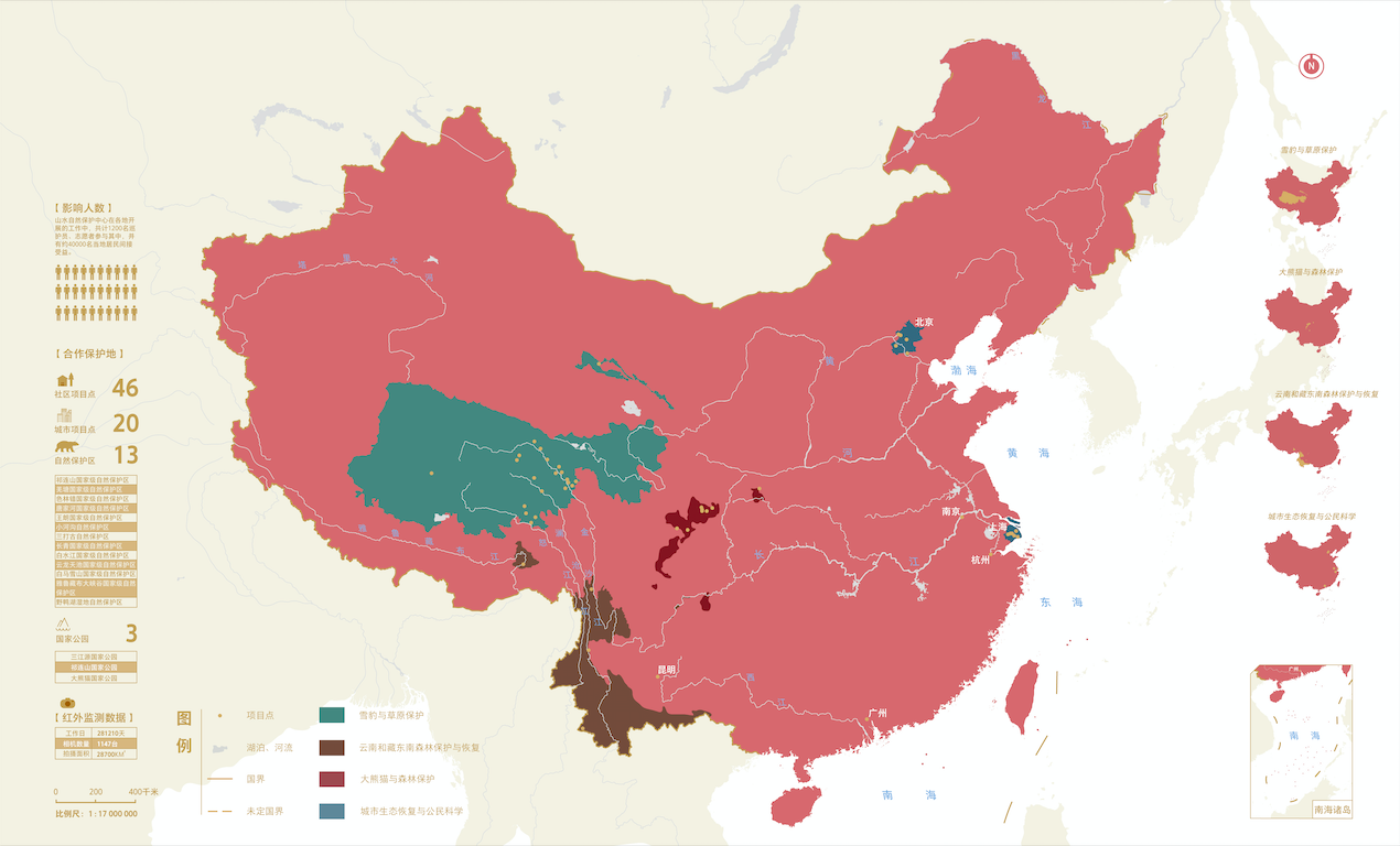 山水联合NGO、保护区、科研院所、自然教育机构等单位,对国内生物多样性进行针对性调查,建立生物多样性共享数据库。基于数据,分析保护现状和空缺,指导保护行动。通过叠加环评信息,评估建设项目和规划对于生物多样性的影响,进而推动相关政策的优化。
