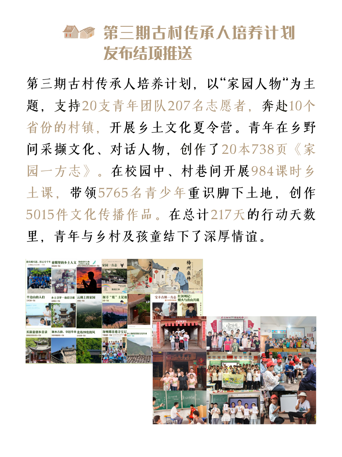 | 宣传费 | 制作乡土教育水源计划、古村传承人培养计划、文化点亮乡村行动的宣传推文、视频等费用,预计推文500元/条*10条=5000元,视频10000元/支*2支=20000元 | 25,000.00 元 |
