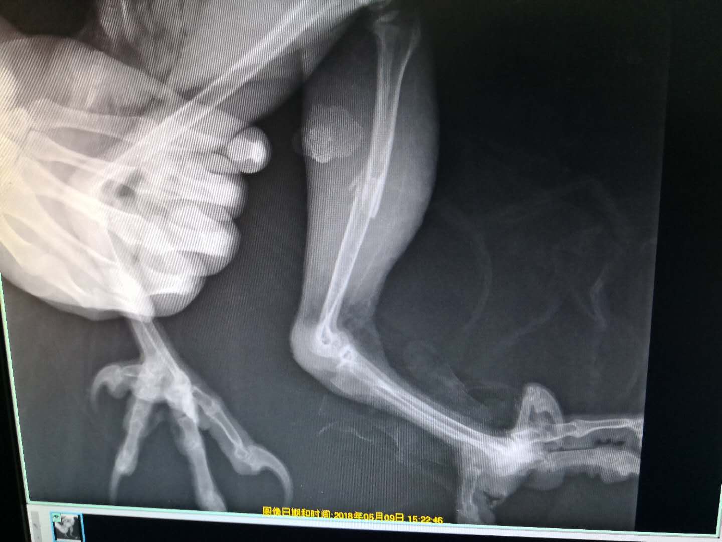 为了不耽误我的病情,身为警察叔叔的李主任在下班后马不停蹄的将我送到中心的合作救助单位—润珑宠物医院。经过半小时的手术后,我的断骨处被成功地接了回去,接下来,我需长时间的静养,直到断骨长好。