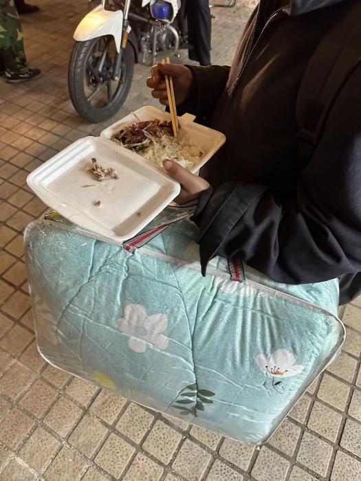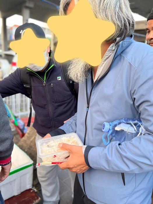 在一次探访中,我们遇到当地人的斥责,他们认为不应该帮助街友,当时我们就说,一顿饭可以解决他们的问题吗?你们问一下,这里的街友,有谁愿意流浪?愿意睡在街上?愿意拿这一份盒饭?说的时候,我们看到街友的头都低了下来。当地人也表示了理解,随即离开了。