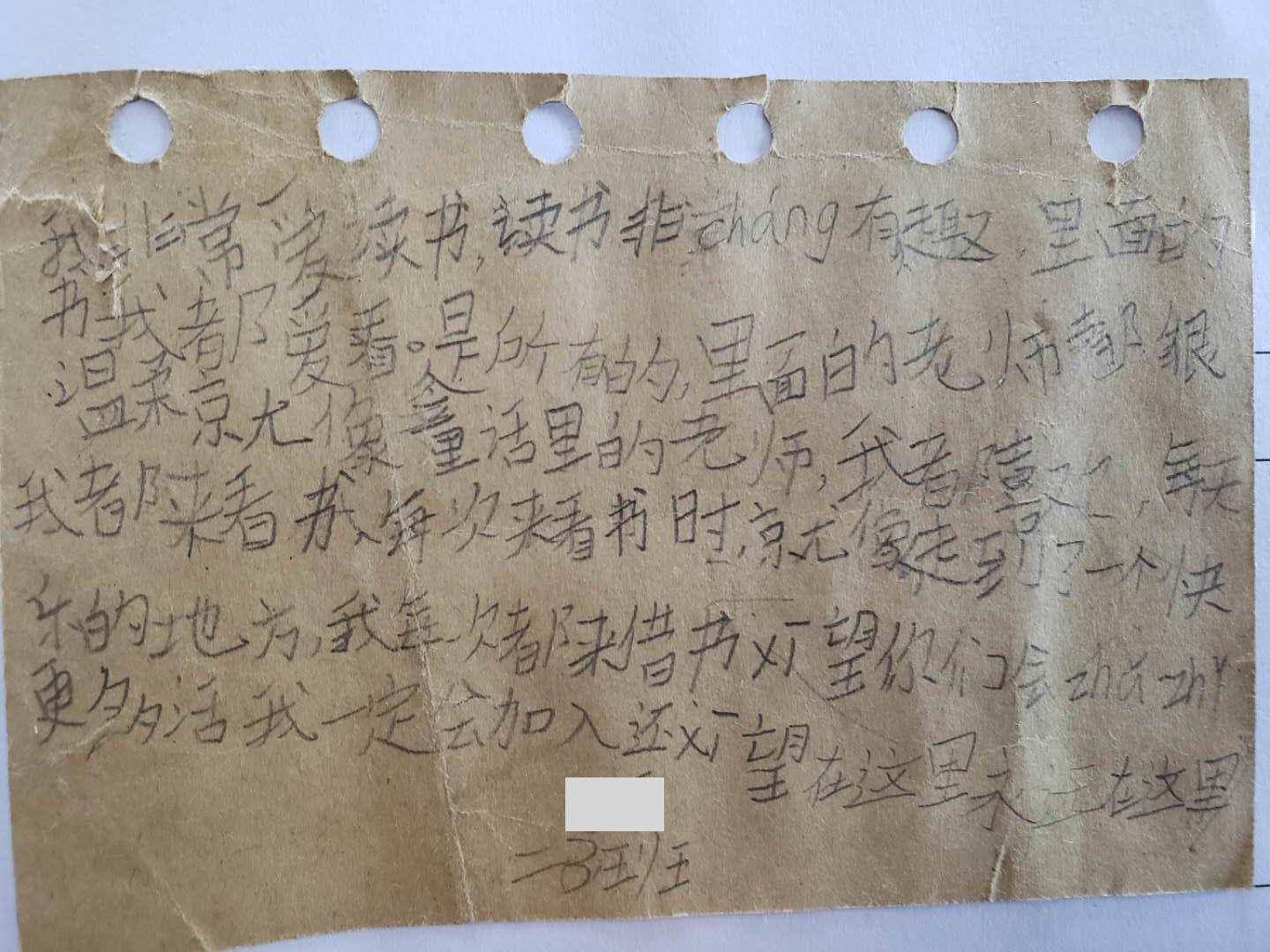 “我非常爱读书,读书非chang有趣,里面的书我都爱看。是所有的。里面的老师都很温柔就像童话里的老师,我都喜欢。每天我都来看书,每次来看书时,就像走到了一个快乐的地方。我每次都来借书,还xi望在这里永远在这里。”