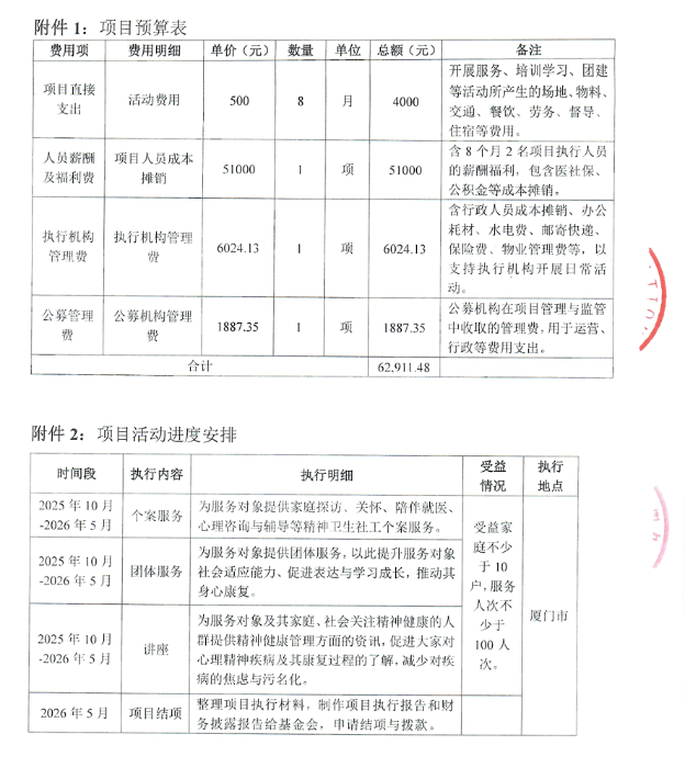 | 督导费 | 开展服务、活动、培训学习、团建等方面在邀请专家、督导、顾问等人员所产生的费用 | 6,000.00 元 |