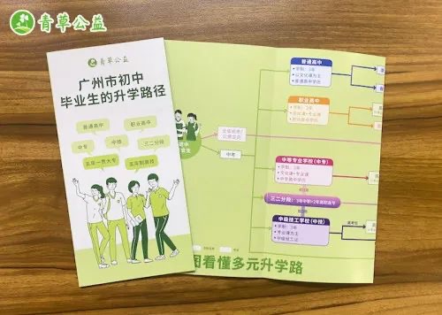 流动儿童和家庭可以获取青草独家整理和编写的折页与手册——广州地区流动儿童初中后升学路径和中职学校专业选择。