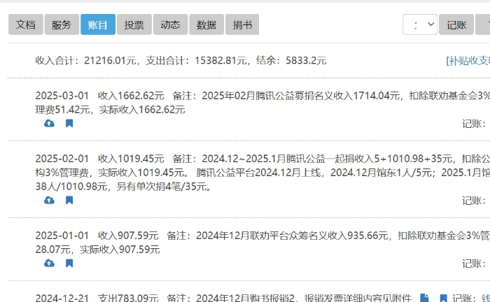 | 备用金 | 由微澜图书馆整体统筹使用,用于各馆运营中可能出现的意外事件处理,如未开支,则一直留存备用 | 500.00 元 |