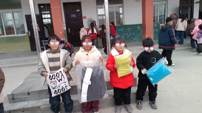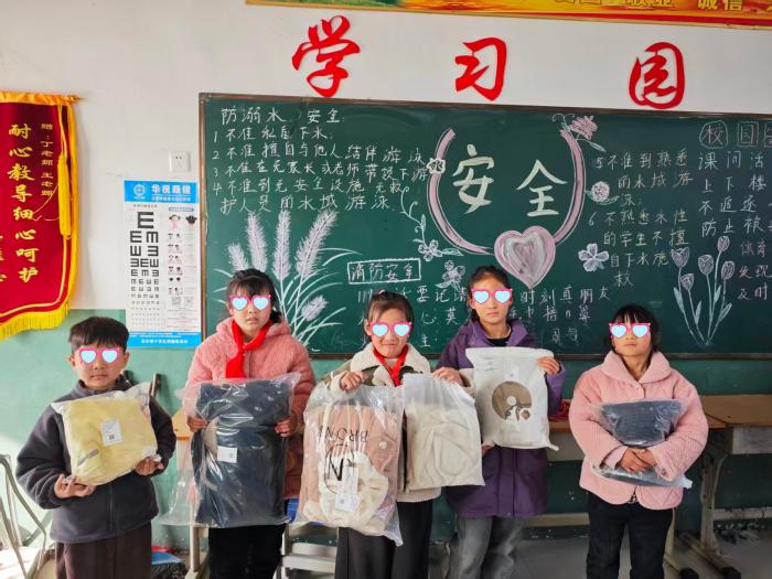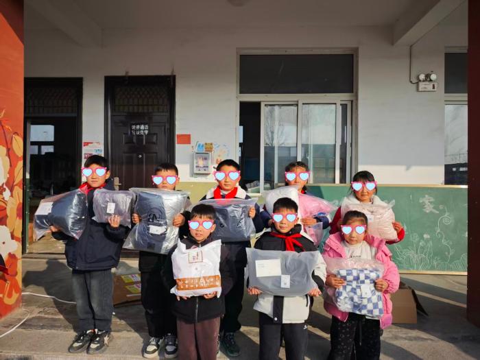需求地的孩子们收到精准捐衣后的合影