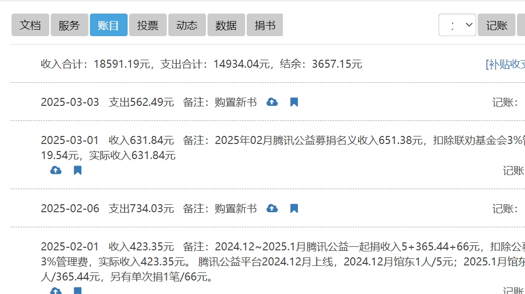 | 备用金 | 由微澜图书馆整体统筹使用,用于各馆运营中可能出现的意外事件处理,如未开支,则一直留存备用 | 500.00 元 |