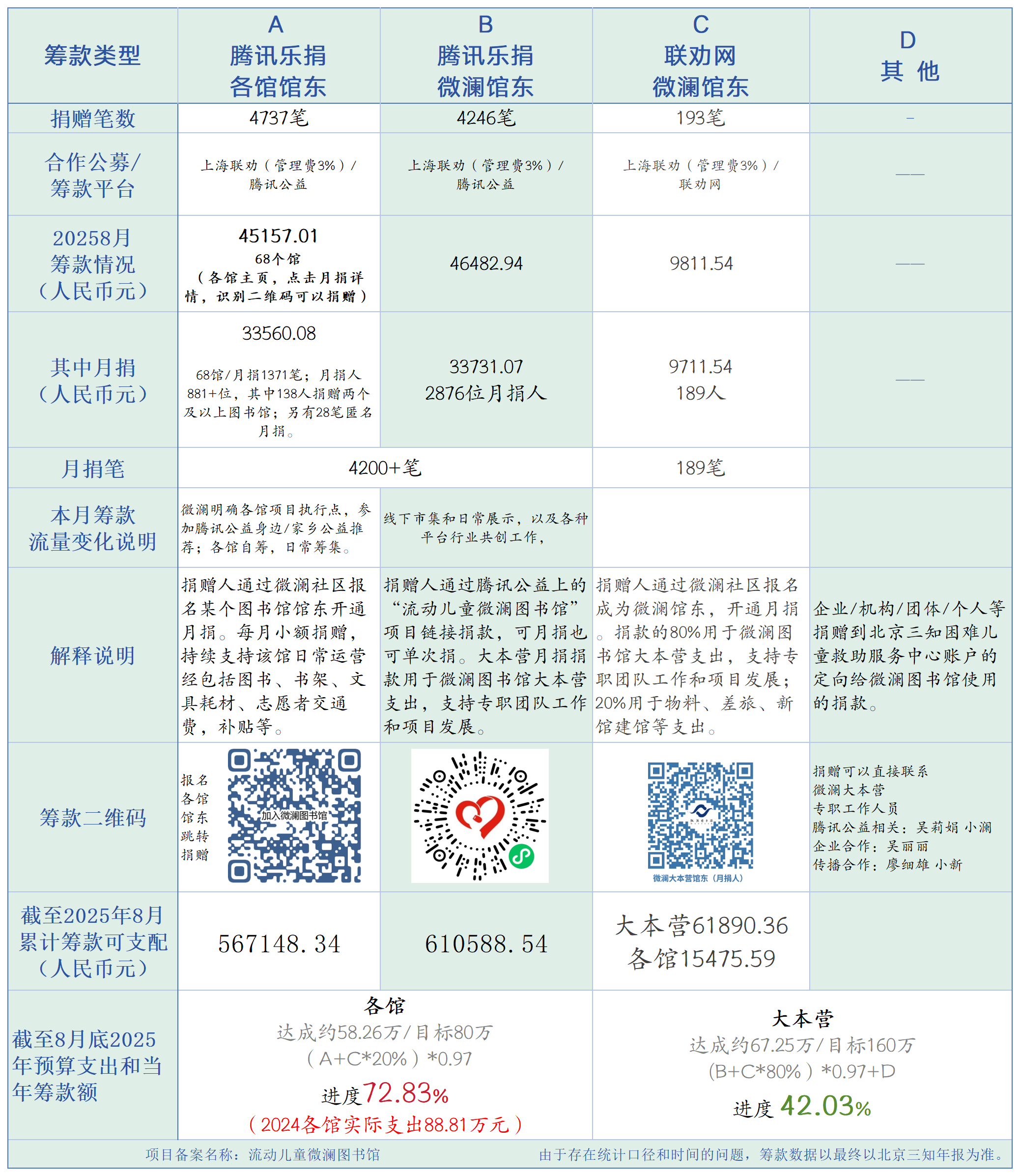 | 微澜图书馆运营物资 | 新开拓图书馆/馆东月捐资金不足的图书馆,给与图书/书架等硬件支持,异地开拓新馆差旅等;预算50000元/年,2023.3月上线,预算金额为到2026.3月的三年预算金额 | 150,000.00 元 |