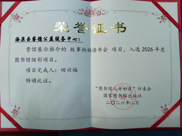 妇女节快乐!今天,故事妈妈们收到一份特别的节日礼物——故事妈妈读书会项目入选国家图书馆出版社2026年图书馆炫彩项目荣誉证书。这是晓荣馆长和故事妈妈们一年多时间做出来的重参与的公益项目,是我们阅读推广工作的重要见证。