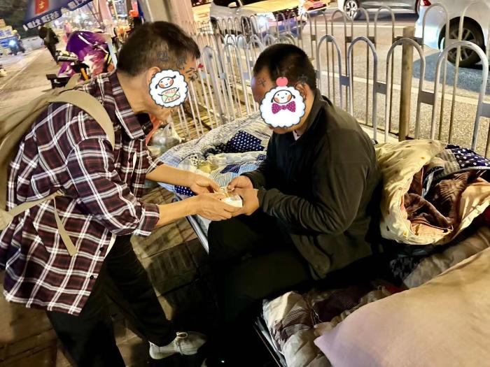 2024年4月1日至6月30日,共在街头派餐27次,派发食物包3954份,发放衣物包636份,发放药品包59份,理发33人次,提供洗澡80人次,帮助6位街友办理证,带领街友小组学习赋能531人次,帮助两位街友介绍工作,两位街友脱离街头,回归社会。五月的广州雨水较多,天气湿热,蚊虫较多,街友所在的港湾场地比较小,街友们聚在一起,空气的气味对社工和志愿者们来说,是个不小的挑战,但是五月也是让人温暖的季节,有位爱心志愿者带着自己的孩子,为街友们买了水果荔枝,对于长期在街头流浪的街友来说,每天能够填饱肚子都是奢望,更何况是吃到水果呢,小志愿者在狭窄充满街友味道的港湾里把水果一个一个递给街头,街友们都很开心,由于打码的原因,看不到街友的笑容,但是社工和志愿者对街友们的关怀和接纳,让他们开怀大笑,平常的街友都是内向的,沉默寡言的,原来在面对爱和接纳的时候,是街友们心敞开的时候,每个人都会经历不容易的时候,没有人喜欢流浪在街头过着食不果腹,衣不蔽体的生活,或许我们一个小小的帮助,一句温暖的语言,都能让街友在困难中得到力量,在黑暗中看见光,食物让街友肚子得饱足,人们对街友得接纳和尊重,是街友重回社会得动力!