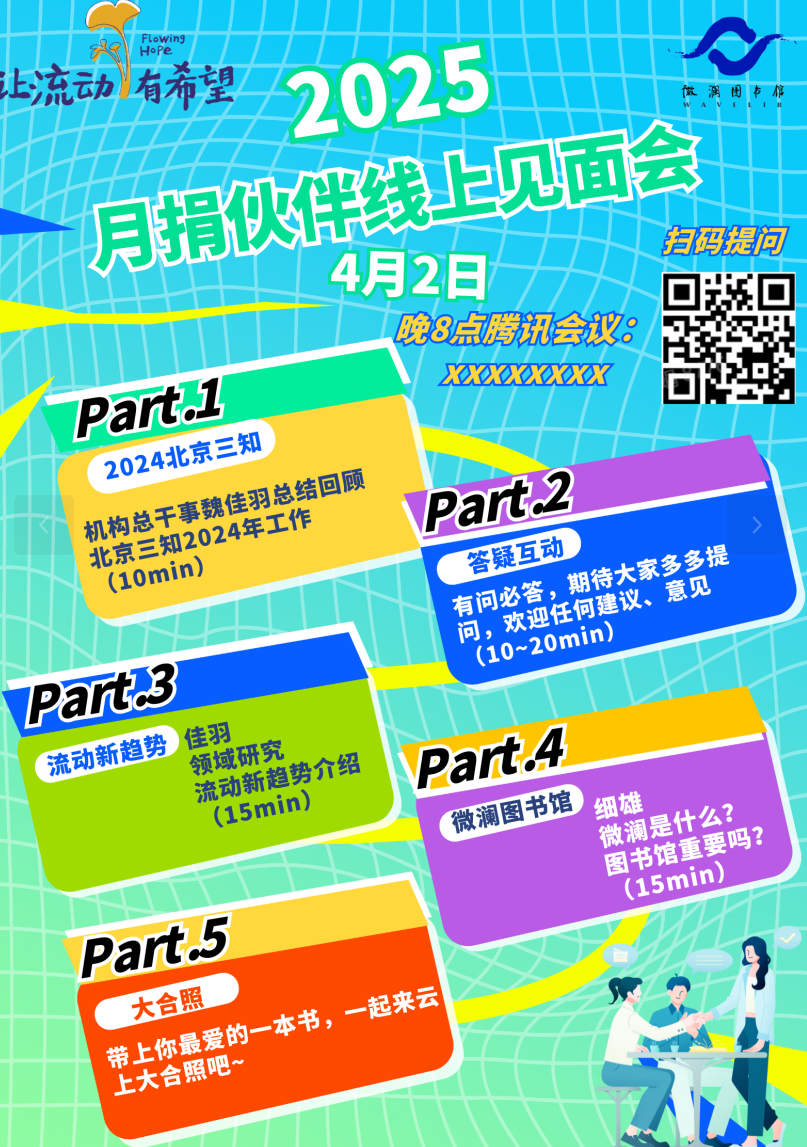 感谢各位月捐伙伴的关注和支持,4月2日晚线上沙龙欢迎一起来,北京三在知2024年工作总结,2025年工作展望(计划)。