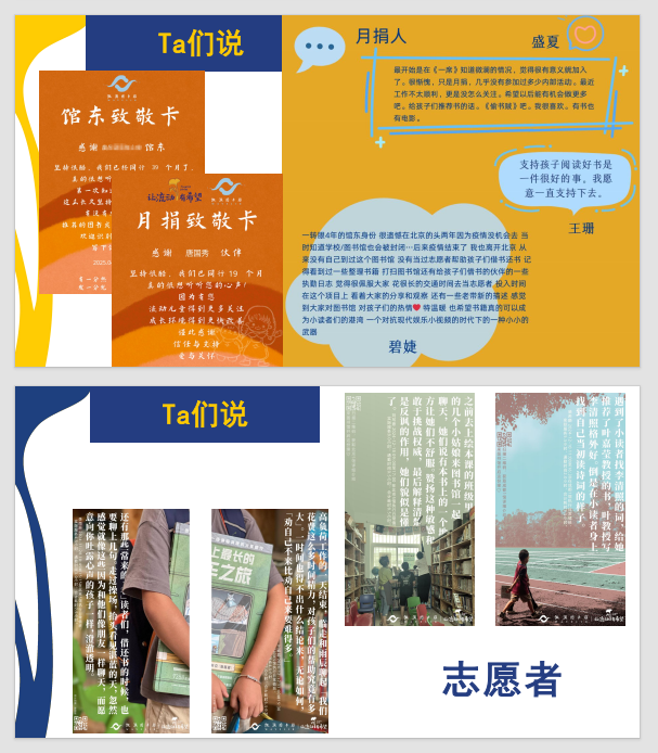 2025的最后一个秋日,问冬日好!今年下半年气候变化依旧很大,北方下了好几场雨。一场秋雨一场寒,转眼间,全国各地都要入冬了。第三季度,北京三知我们依旧持续地面向公众、公益伙伴、研究者、媒体记者,以“避免分离、促进团聚”为主题,发出行动倡议。7月和8月,微澜的校园馆处于暑期闭馆,8所社区馆照常开放;57所校园馆在9月新学期恢复开馆。2025年第三季度,微澜图书馆共计为11869位读者提供图书借阅66121册次,整理受捐和购买并录入新馆藏11605册,502位志愿者登记服务1418次共计8244.5小时。这背后离不开每一位支持和参与伙伴的努力。暑期,微澜的伙伴们在北京和深圳参与了三场市集。大家带着微澜文创甚至自己的物品,有的伙伴和孩子一起围上围裙,向陌生人分享公益,介绍流动儿童和推荐微澜图书馆。7月,在成都和深圳的伙伴先后发起了《风起前的蒲公英》点映。伙伴们一起观影、一起逛博物馆、一起交流分享儿童文学等活动,让暑假充满了创意。暑假,郑州1馆和北京39馆两所小型图书馆撤馆。