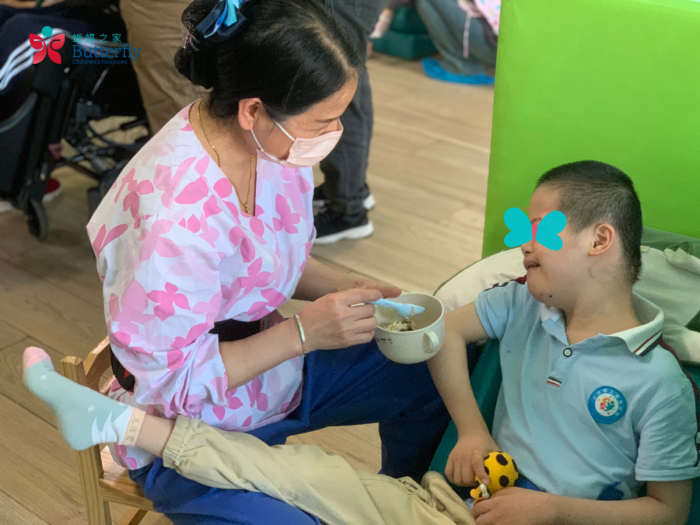 因为身体情况特殊,蝴蝶之家的孩子们大都饮用特殊奶粉。近期,我们根据孩子们的身体变化情况,重新评估了孩子对于特殊奶粉的需求,并尝试对部分孩子进行转奶,活泼床位的Charlie小朋友首先尝试,通过小佳膳及普通奶粉1:1配比喂养,护理员们密切关注着Charlie的情况,如能耐受,后续将逐步过渡到由普通奶粉喂养。