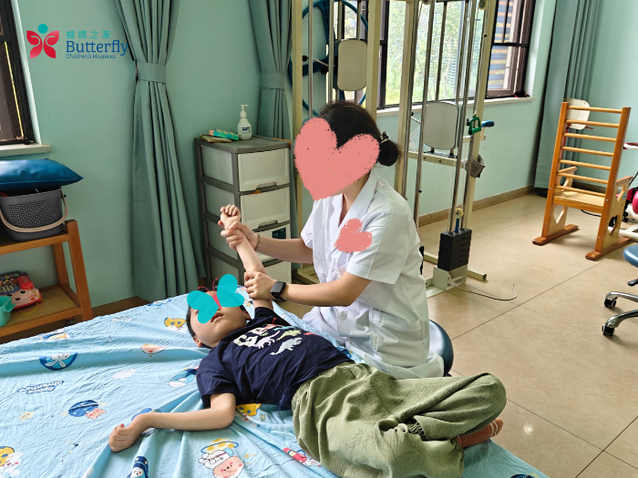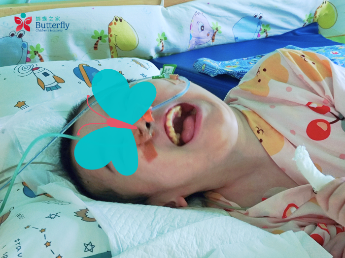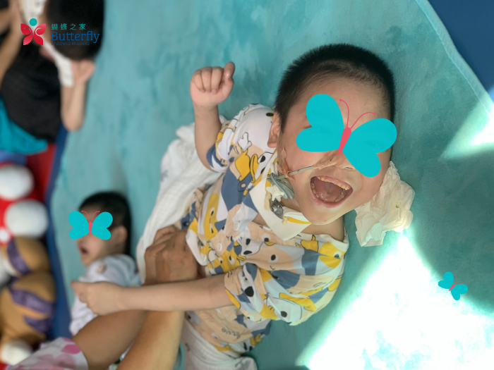 6月初,在护理员及护士的陪伴下,欢愉床位Noah前往上海进行了手术治疗,在上海待了大半个月后,Noah返回蝴蝶之家。护士和护理员阿姨们特别留意恢复期Noah的照护,特别是手术伤口部位的消毒与护理。这次手术回家后的Noah相比上次状态好不少,开心时不仅会微笑,还会展示出他的招牌动作——指挥家式摆手舞。
