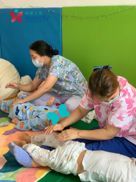本月,给予在机构的孩子基础精油按摩共75次,每次30分钟。另外需要做康复训练的孩子共9人,由工作人员送至福利院康复室或由蝴蝶之家康复师进行康复训练共155次。