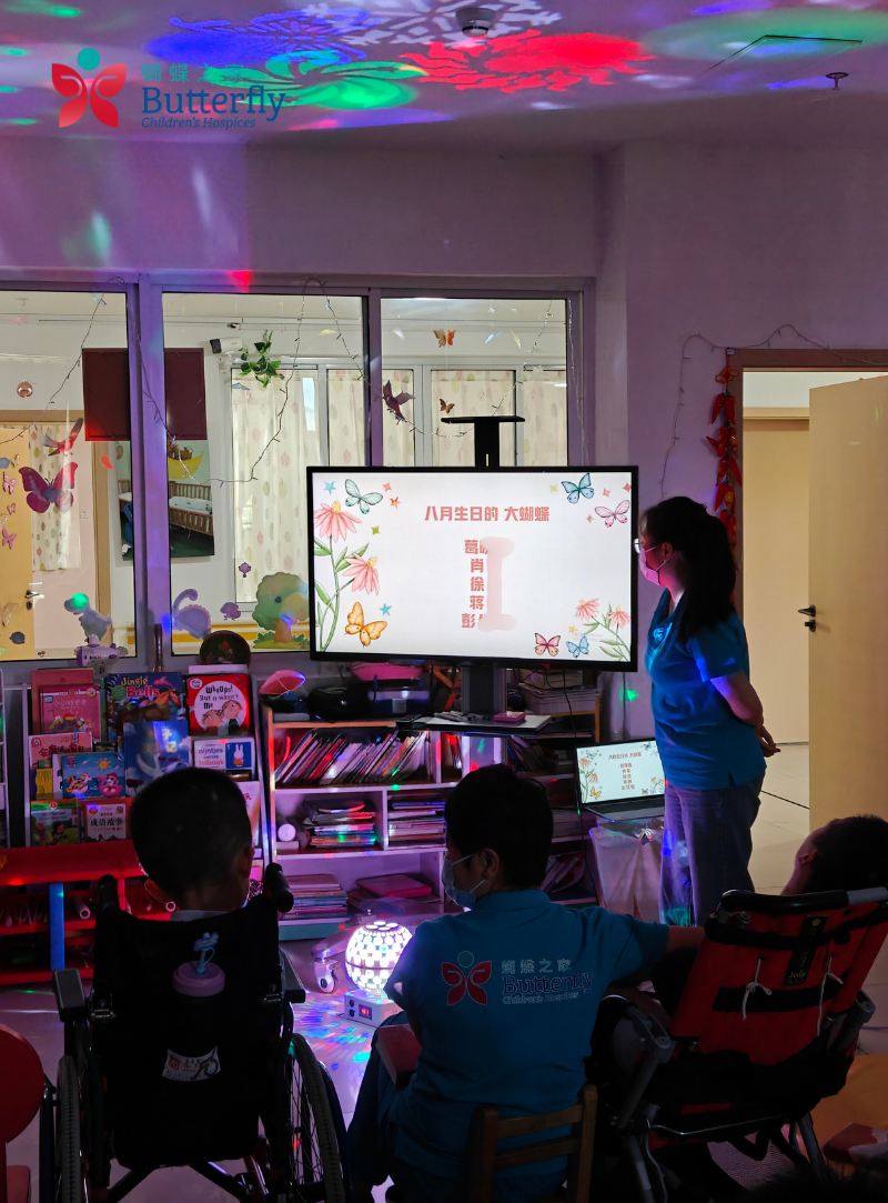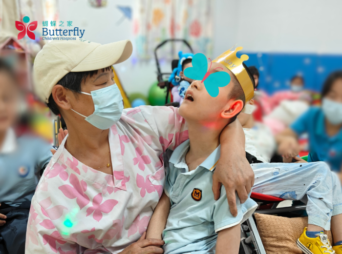 八月,仁慈床位的Zach小朋友迎来了他的12岁生日。蝴蝶之家的大小“蝴蝶”们齐聚活动室,为Zach庆生。