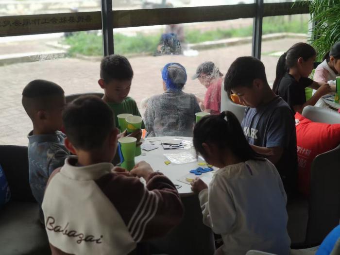 在儿童服务站内,我们开展了丰富多彩的课外游戏活动,包括手工制作、绘画、音乐、体育等。这些活动不仅丰富了乡村儿童的课余生活,还培养了他们的兴趣爱好和团队协作能力。