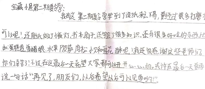 历时6天的夏令营,孩子们在宝藏小屋相识、相知,共同走过了一段难忘的时光。