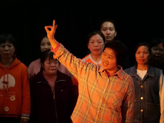 南方玫瑰剧社成立:姐妹们期盼已久的戏剧项目正式启动,投票命名为“南方玫瑰剧社”——寓意我们来自四方,在南方城市扎根,追求有尊严的生活。接连三天的工作坊里,姐妹们通过舞蹈、模仿、分享彼此拍摄的牛始埔日常,用身体表达自己的人生。有人第一次走T台步,有人学鸭子走路抢凳子,最后用各自步伐“走自己的人生路”。剧社成员婒婒是舞蹈老师,带着大家练习爵士步;晓琴分享晨练的照片;丽英展示常去的菜市场视频。姐妹们说:“希望用戏剧让更多人听见女工的声音。”