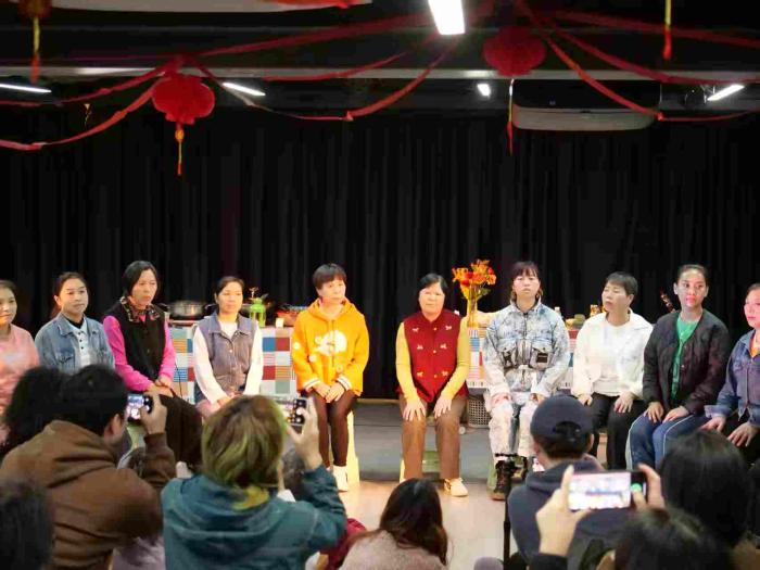 戏剧巡演:2月1日,姐妹戏剧在广州演出。观众说“这是安全、性别友爱的场域”,姐妹们也因此更自在。演出后大家久久不愿散去,像朋友聚会般温暖。8日,留在村里的姐妹们聚餐庆功,吃火锅庆祝广州巡演圆满完成。小青和芳姐一早外出买菜,忙碌一上午。除了火锅,每位伙伴还领到了由姐妹社企制作的手机支架,上面印着“工人是天”“我们有力量”等字样,大家当场就粘在手机上,特别开心。