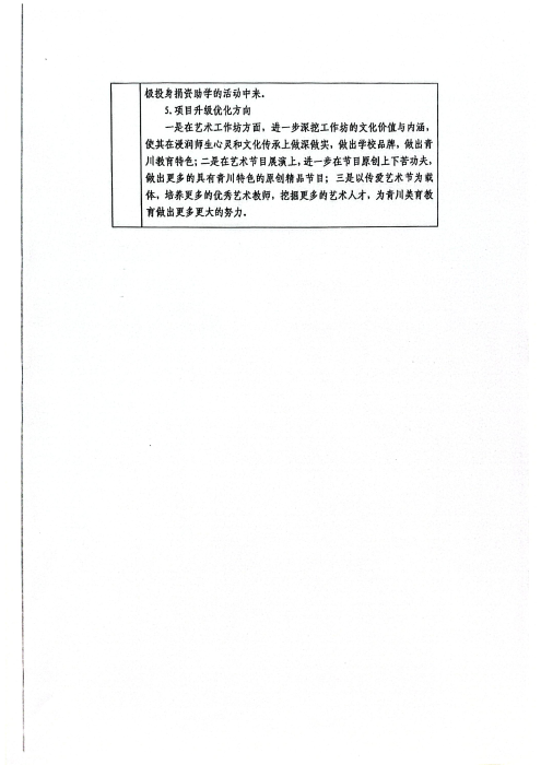 2024年11月,基金会完成第三届金昌启亚传爱艺术节捐赠协议拟定、确认、签订。基金会持续支持提升广元市青川县儿童艺术教育,将在2025年3月联合传爱基金会开展第三届“金昌启亚”传爱艺术节,并参加艺术节文艺汇演、现场颁奖,开展艺术工作坊走访活动。