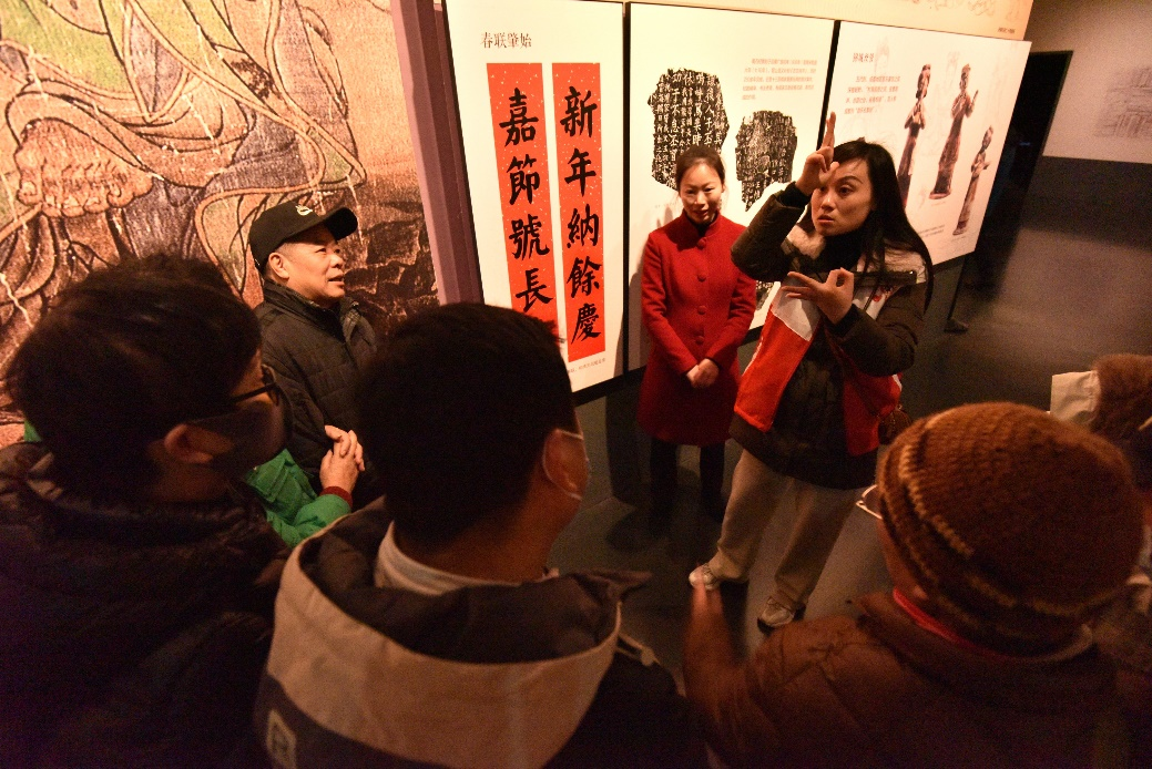 为确保每位听障朋友都能获得优质的手语讲解服务,观展活动中每20人分为1组,每组分别配备了1名手语翻译老师和1名博物馆讲解员,在他们的帮助下,聋人朋友快速融入到观展的欢乐氛围中。同时,我们也引入了数字化手语导览视频,以更加生动、全面地呈现展览、文物及其背后的历史故事。