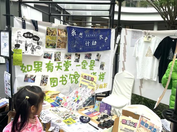 节日开始之前,两个馆的馆务们在图书馆发布徽章创作征集,换取义卖资金用于购书的活动。志愿者细心组织和筹备,小朋友们踊跃参与。