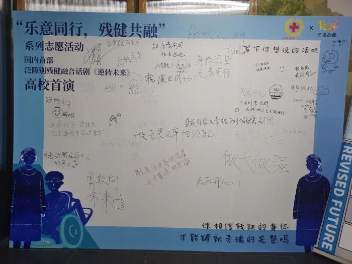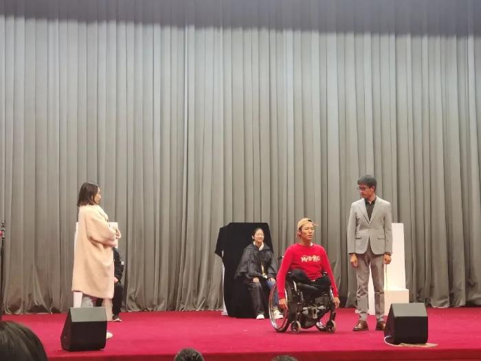 《逆转未来》是国内第一部泛障别开放式残健融合戏剧,11月9日晚,《逆转未来》在北京服装学院樱花园校区大礼堂进行了首场高校公益演出,反响热烈。