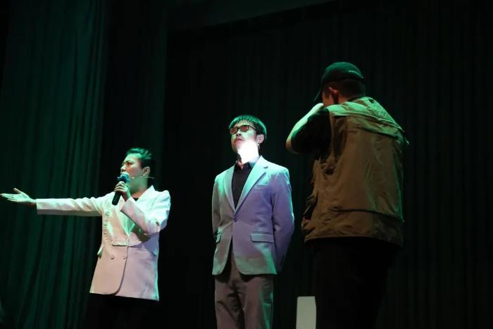 之后马老师专业阐释并演示 “表演下的零度状态”,强调演出前放松身心、打开自我的重要性。接着分组练习,每组 4 - 5 人,依据马老师报出数字,特定数字对应的成员面向观众,巧妙训练成员在空间里对指令的即时反应与团队协作。最后马老师亲身示范不同 “空间” 下表演呈现,像从家到地铁站、找钥匙、厨房里面做饭之类的生活片段,生动展现空间转换中的表演技巧。学员们随后分组,将厨房、会议室等场景搬上 “舞台”,尽情演绎,把所学空间驾驭知识化为实践成果。