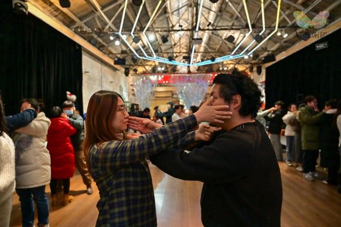 马老师开篇点明表演本质 —— 于当下空间真实活着。视障伙伴在其他伙伴协助下,以脚步丈量、用手触摸,开启对 321 空间的感知,这一空旷厂房两边的装饰物也,成为探索的细节线索。随后,大家自由行动,用多样方式与迎面伙伴打招呼,打破陌生与隔阂。两两分组环节,通过手触对方脸部感知 “社会化微笑” 并调整,进一步加深对空间中人际互动的答案理解。