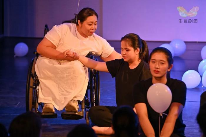 除了剧团的成员,还有四位来自北京服装学院的同学参与到了本次话剧表演当中。这是其中一位参与者的感受:“参与演出后,我第一次体会到原来戏剧可以给人带来这么大的力量,虽然大部分演员在生活中有障碍,但能看出来演出中,他们并没有因为身体的不健全被困住,也不惧怕别人的眼光,这种向上向前的力量是很值得我们学习的,演出后我觉得我对戏剧和残障群体有了完全不一样的看法,希望乐意剧团越来越好!”