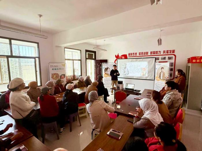 石丽峰老师从庆阳香包刺绣的历史渊源、文化内涵讲起,结合自身多年创作经验,生动讲述非遗文化背后的故事,让妇女们深刻感受传统技艺的魅力。技能教学环节,石老师聚焦刺绣基础针法,从穿针引线、图案设计,到色彩搭配、绣制技巧,进行手把手指导。针对初学者的难点,她现场示范平针、锁针等常用针法,耐心纠正大家的操作姿势,还结合乡村生活元素,引导学员设计贴近生活的刺绣图案。