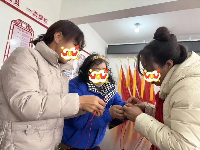 由于绳编需要手眼协调和耐心细致,部分妇女一开始总也掌握不好绕圈的角度和拉紧的力度,编出的结要么松散变形,要么大小不一。“别急别急,刚开始都这样,多练几遍就熟练了。”梁老师手把手地帮大家调整姿势,志愿者们也分成小组,一对一进行帮扶,遇到学员有疑问,立刻上前答疑解惑。虽然学习过程中遇到了不少困难,但阿姨们没有一个轻言放弃,大家相互交流经验,互相打气鼓劲,现场氛围既热烈又温馨。