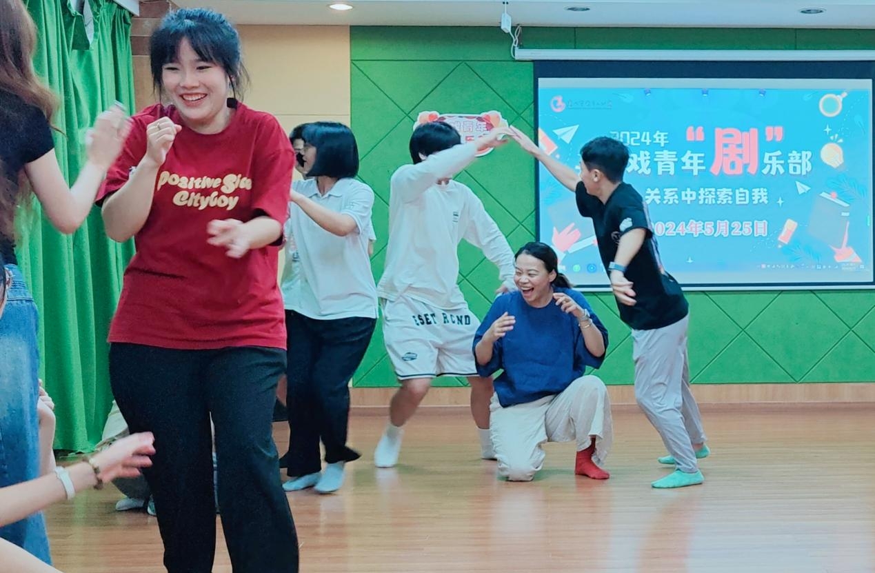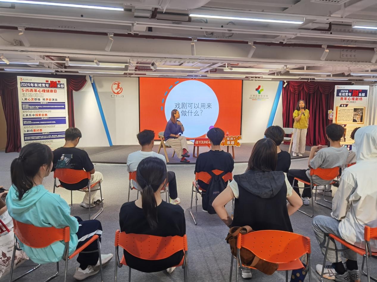 5月25日,受到广州市青年文化宫的邀请,HOPE学堂为42名职校学生进行了心理健康为主题的戏剧工作坊。工作坊围绕自我的行动与情绪,通过身体练习和空间探索,体验剧场中的故事与情绪。也带领同学们探索关系中的自我,重构戏剧中的关系,体验自我角色与身体觉察。工作坊后,我们开展了与同学们的剧场面对面交流沙龙,本次沙龙聚焦高校戏剧相关社团学生骨干对个人成长、舞台表演、戏剧创作等方面的需求,探索心理服务、教育戏剧与社会工作的融合发展和实际应用。