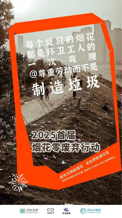 1.多方联合发起首届“烟花零废弃”行动为带动公众文明放烟花,2025年绿色潇湘、不知星球、河流守望者、湖湘益起来等联合多家环保伙伴发起首届“烟花零废弃”行动。
