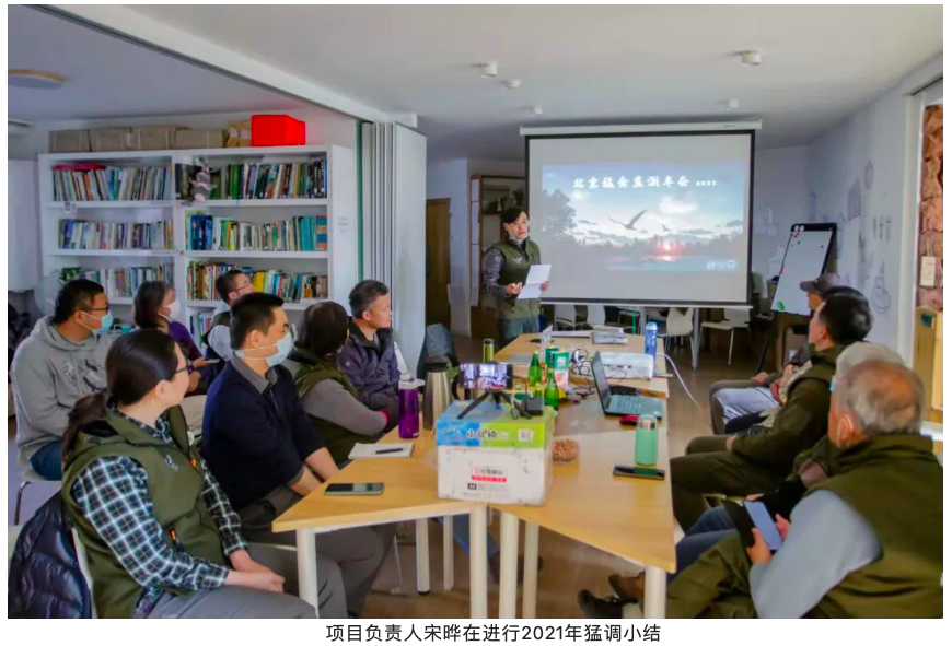 今年是北京迁徙猛禽监测项目开始正式调查的第十年,项目组策划了一系列的“猛调十周年”活动。作为系列活动的开始,2022年3月20日,自然之友野鸟会召开了北京迁徙猛禽监测项目2022年春季调查启动会。会上,项目负责人宋晔介绍了2021年度调查情况,对上一年度的优秀调查员进行了表彰。项目协调人张鹏介绍了“猛调十周年”系列活动的策划,对2022年度调查工作进行了说明。孟令旸、林毅两位调查员作为优秀的新调查员代表,分享了参与猛调的收获以及高原猛禽的观察经验。当然,会上依然少不了喜闻乐见的“考试”环节。