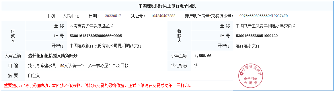 建水团县委开展“六一微心愿”活动 2022年06月17日 5月31日上午,共青团建水县委带领青年志愿者到普雄乡万家庄村委学校、普雄小学开展“六一微心愿”活动,活动前期团县委工作人员认真了解每位学生的微心愿礼物,活动过程中,志愿者们为30名留守儿童送去书包、篮球、手表、书籍等微心愿礼物,此次活动为留守儿童送去温暖、带去问候、传递爱心,增强少年儿童的获得感、幸福感。