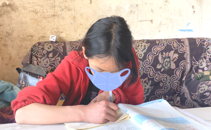 她伏案写作业,笔尖划过纸页,像在划破命运的黑暗。