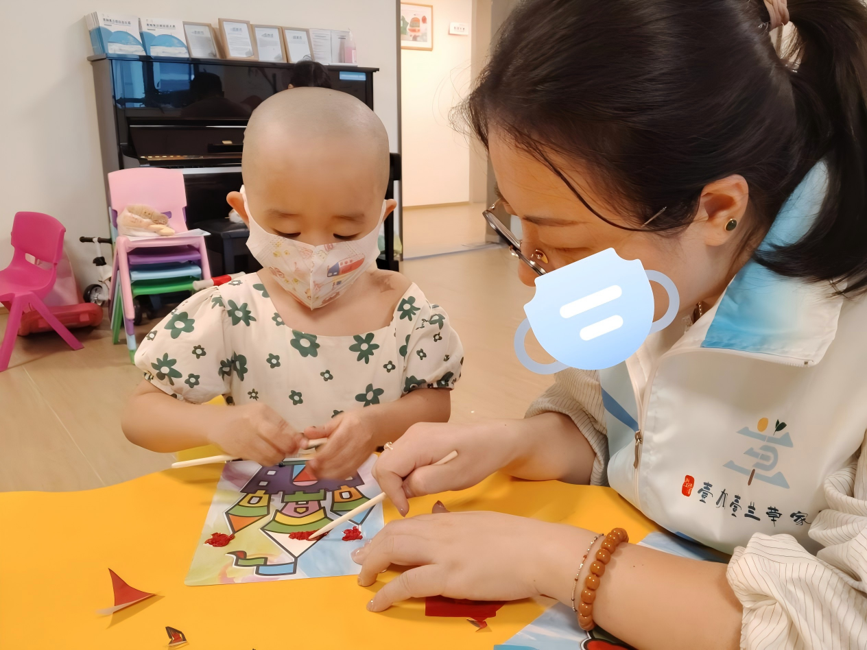 9月4日,在壹加壹兰草家园,志愿者为实体肿瘤患儿开展了一场充满童趣的DIY创意搓纸画活动,用艺术陪伴为孩子们注入温暖。