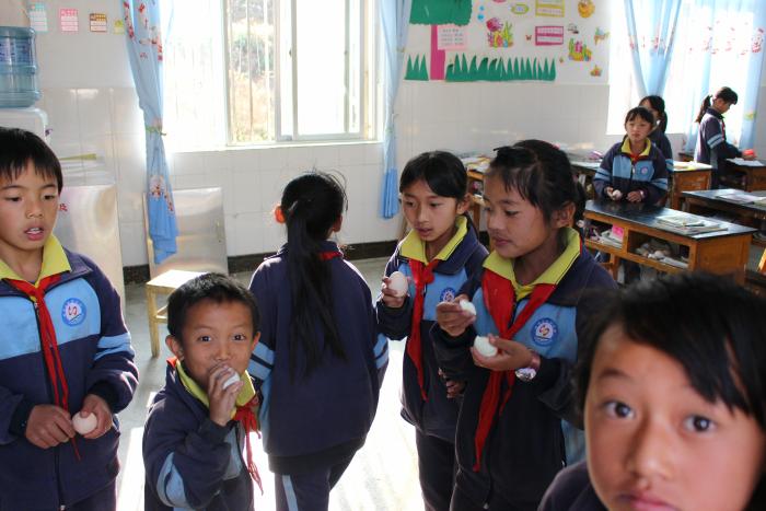 项目进展顺利,实施各学校有序组织工作,保证鸡蛋的新鲜并和国家的营养补助(每天一盒奶)相结合,更增加了孩子们的营养!