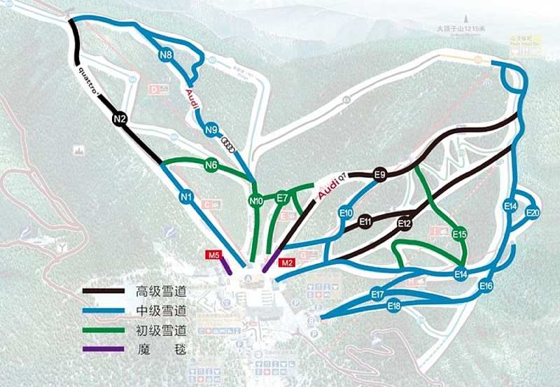 (北大壶滑雪场雪道分布图)