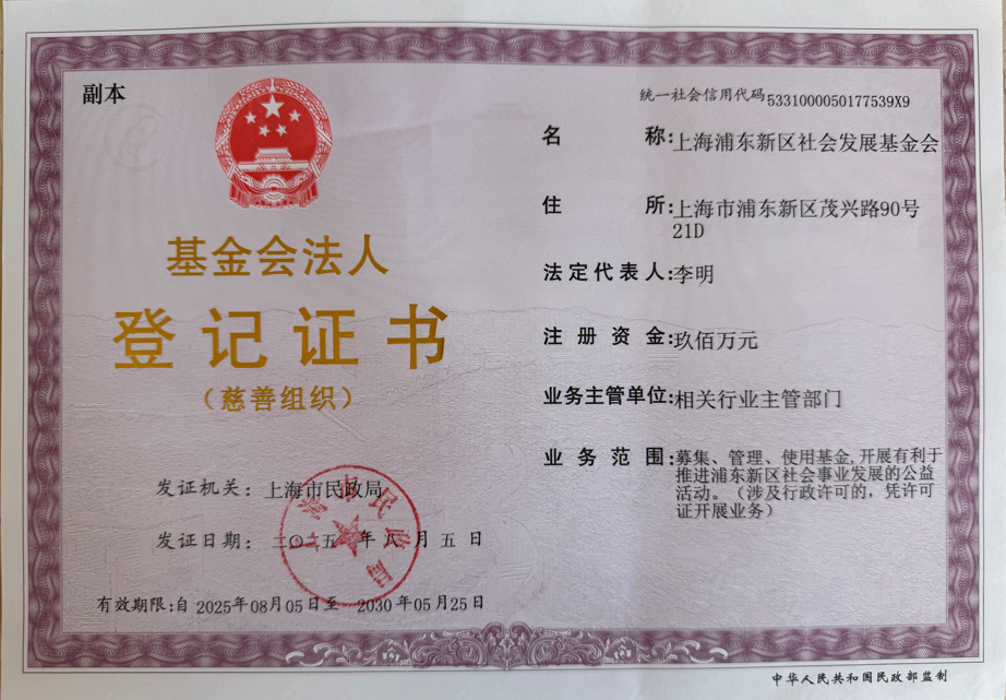 1、您的捐赠款,由“上海浦东新区社会发展基金会”负责接收。如有项目疑问等,请联系他们。