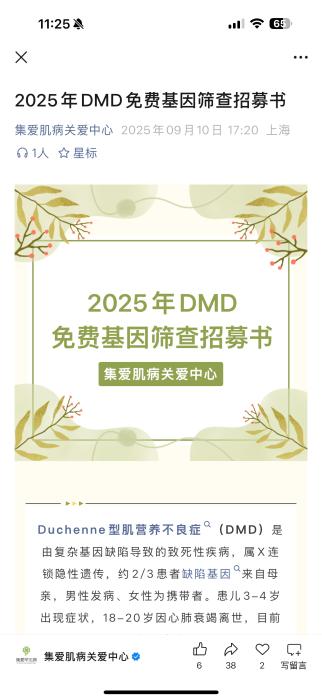 上海集爱肌病关爱中心秉持“以人为本 尊重生命”的理念,通凝聚社会爱心的力量,推行中国DMD社会行动“暖心”罕见病母亲健康护航,做好母亲心肌病预防和干预,希望能够将这份真诚的爱传递到母亲的心中。在2017-2023年连续七年开展了免费对贫困DMD患儿家庭母亲携带者调查,对预防DMD患儿母亲是做好心肌病预防和干预提掌握了第一手资料。联系人:杨淼 13764554226。