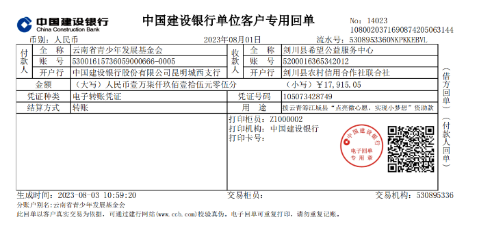 1、您的捐赠款,由“云南省青少年发展基金会”负责接收。如有项目疑问等,请联系他们。