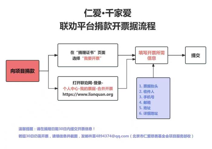 2、尊敬的捐赠人,感谢您对项目的关注和支持。广州市志鲲公益慈善基金会享有公益性捐赠税前扣除资格,为保障每一位捐赠人的权益,我们将为您开具捐赠电子票据。请您在捐赠日起30天内,将开具票据所需信息【包括:捐赠截图含捐赠项目、捐赠金额和交易单号,票据抬头,手机号,电子邮箱】填写至 https://docs.qq.com/form/page/DWnRoVHZ6RmhaVUZR上或扫码填写,经我会确认后将尽快开具电子捐赠票据。
