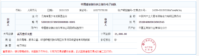1、您的捐赠款,由“云南省青少年发展基金会”负责接收。如有项目疑问等,请联系他们。