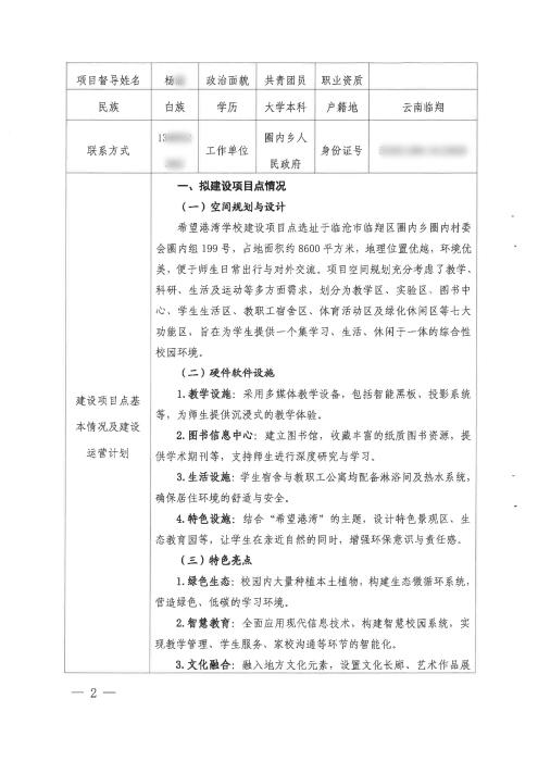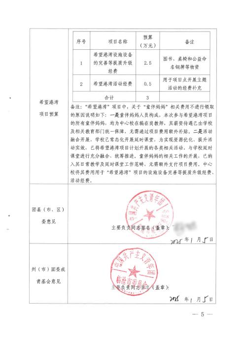 项目内容:在云南省内建设希望港湾,包括场地升级改造、设施配备、人员配置及活动组织。